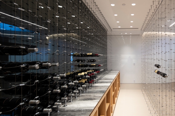 Ако се спуштите по скалите на пониско ниво, ќе наидете на спектакуларна, аголна структура која се протега низ целиот простор. Постои винарска визба со доволно простор за 1.000 шишиња, теретана со поглед, спа и сауна, како и домашно кино со кујна на професионално ниво. Недалеку од таму, се наоѓа „Cube“, куќа за гости со четири спални соби и четири купатила.