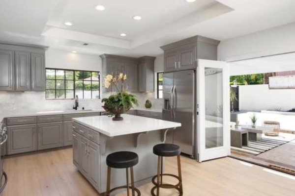 Инсталирана оваа година, сосема новата отворена кујна има сиви ормани, остров во центарот и нерѓосувачки уреди. Француските врати ја поврзуваат кујната директно со покриената тераса, каде што има доволно простор за дневна соба или трпезарија, со поглед на посебна гаража, до која се пристапува на задниот дел од имотот. Скриена е зад гаражата – канцеларија од 20 квадратни метри, совршена за приватност додека работите од дома.
