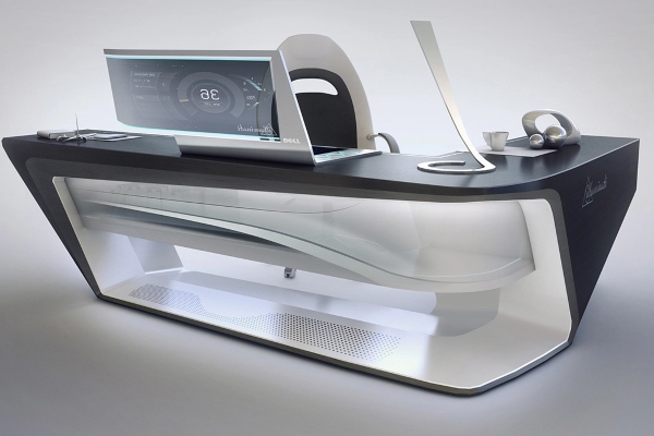 Дополнителни системи за контрола, исто така, ја истакнуваат оваа работна површина за иднината, вклучувајќи подлога за допир и фиксен телефон дизајниран во исправена форма, изработен од не’рѓосувачки челик. Модерната работна маса е создадена во форма L, имајќи форма на традиционални работни маси што сместуваат поголеми компјутерски системи, сместени во канцелариски простории и простории за учење. Под работната површина на масата, нозете му се отворени, така што има доволно простор за движење на нозете.