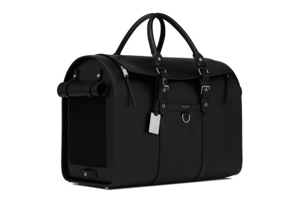 Целиот спектар на новата серија започнува со носач на кучиња, дизајниран специјално за нашите сакани крзнени пријатели. Дизајнот на носачот е нагласен со сребрени елементи на целата површина, што носи решеткаст отвор странично, патент наменет за затворање на горниот дел и логото на Saint Laurent однапред.