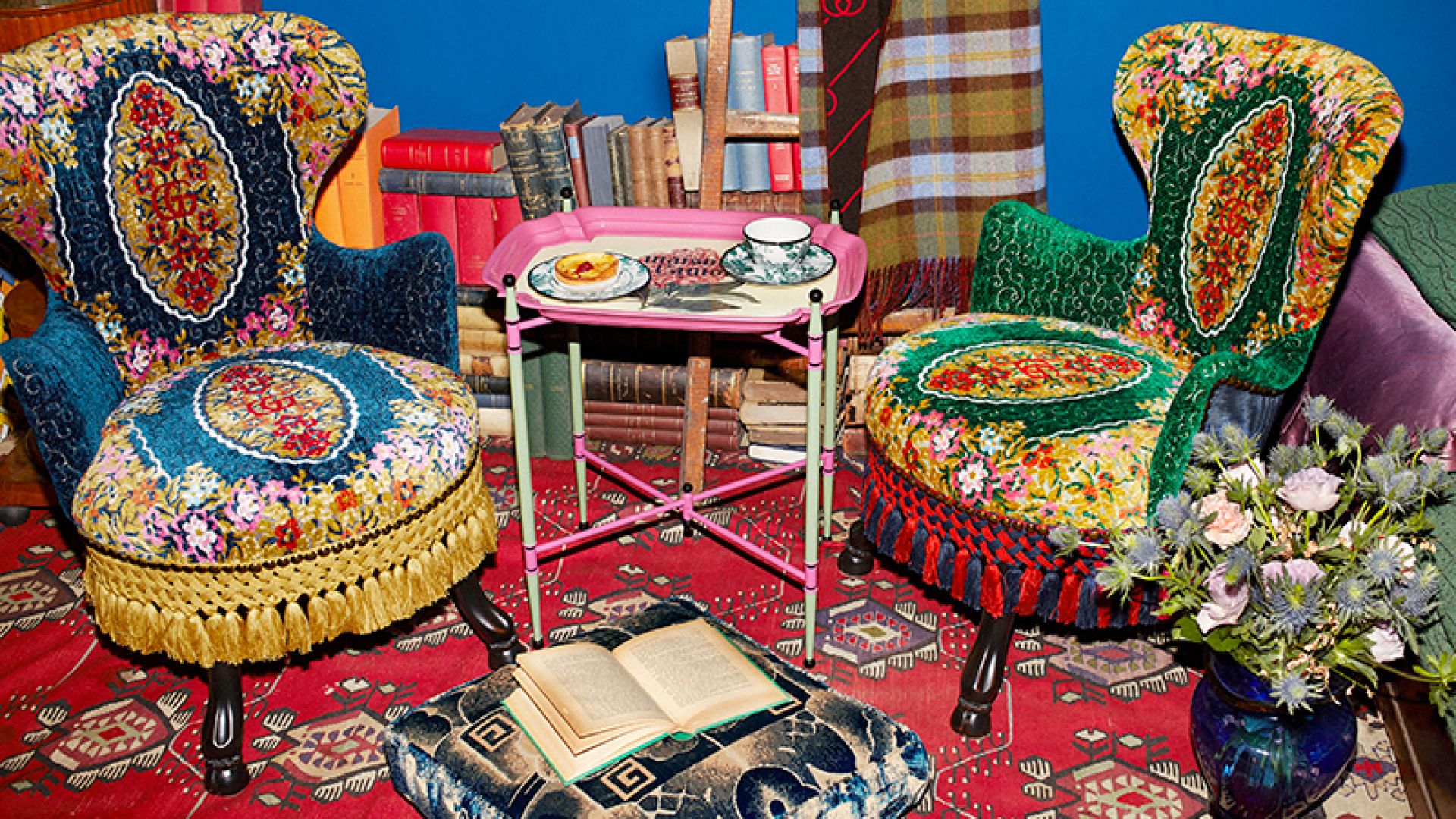 Одразувајќи ја еклектичната, романтична естетика на креативниот директор Алесандро Микеле, новата колекција „Souvenir from Rome“ вклучува мноштво домашни мотиви. Колекцијата нуди бујна комбинација на бои и дизајни, вклучувајќи многу референци и речник на Гучи со богати обрасци. Тука нема правила, италијанската куќа ви дава состојки за да создадете свои приказни за украсување.