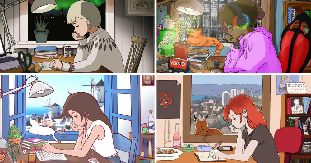„Study Girl“ е позната како лик која не престанува да учи, а во позадина е музиката што поттикнува релаксација и учење (ChilledCow channel), создадена од Хуан Пабло Мачадо на YouTube.