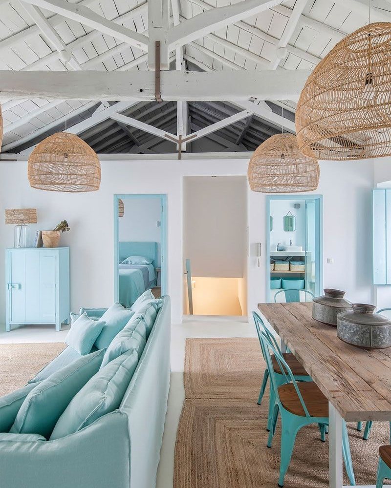 Освен безвременската и елегантна бела, сината и сите нејзини нијанси се подеднакво безбеден избор за секоја викендица. Покрај тоа, оваа специјална палета на бои нè потсетува на грчкото лето.