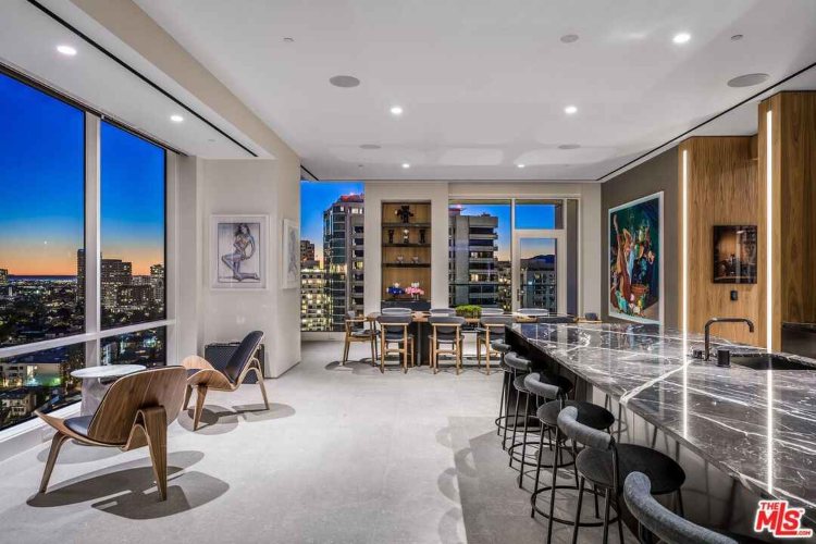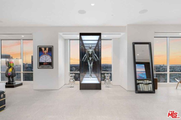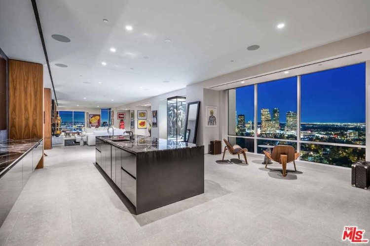 Што се однесува до неговиот луксузен стан во зградата Беверли Вест, тој се протега на целиот кат и нуди поглед од Тихиот Океан и планините Санта Моника, до центарот на Лос Анџелес. Пентхаусот од 800 квадратни метри има четири спални соби и осум бањи.