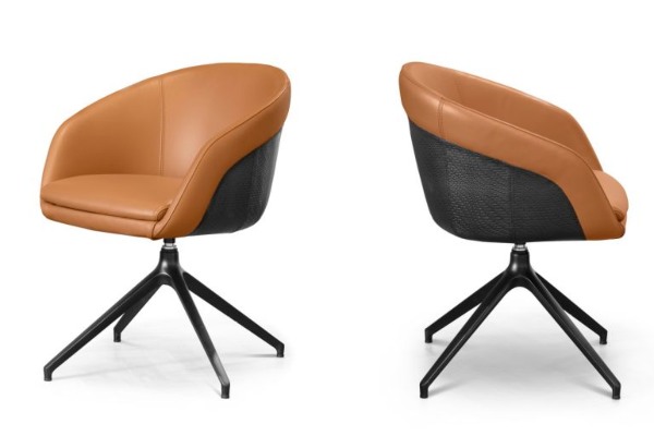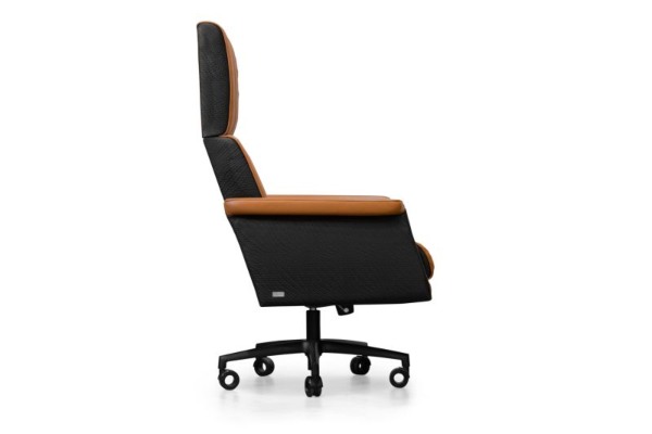 Секоја канцеларија или работен простор мора да им понуди место за седење на потенцијалните гости, клиенти и колеги, и токму тука влегува гостинскиот стол од оваа колекција, кој доби двобоен кожен тапацир со метална подлога со мат финиш. Столот е прекриен со Daino col кожа од предната страна и кожа Cuoio одзади, додека нејзините ногарки се создадени во минималистички црни тонови.