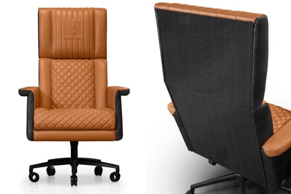 Овој канцелариски стол е исто така изработен од карбон и покриен со кожа, со тон на тонските рабови, а исто така е украсен со релјефното лого на марката на потпирачот за глава. Столот има механизам за прилагодување на висината и механизам за осцилација, заедно со тркалата.
