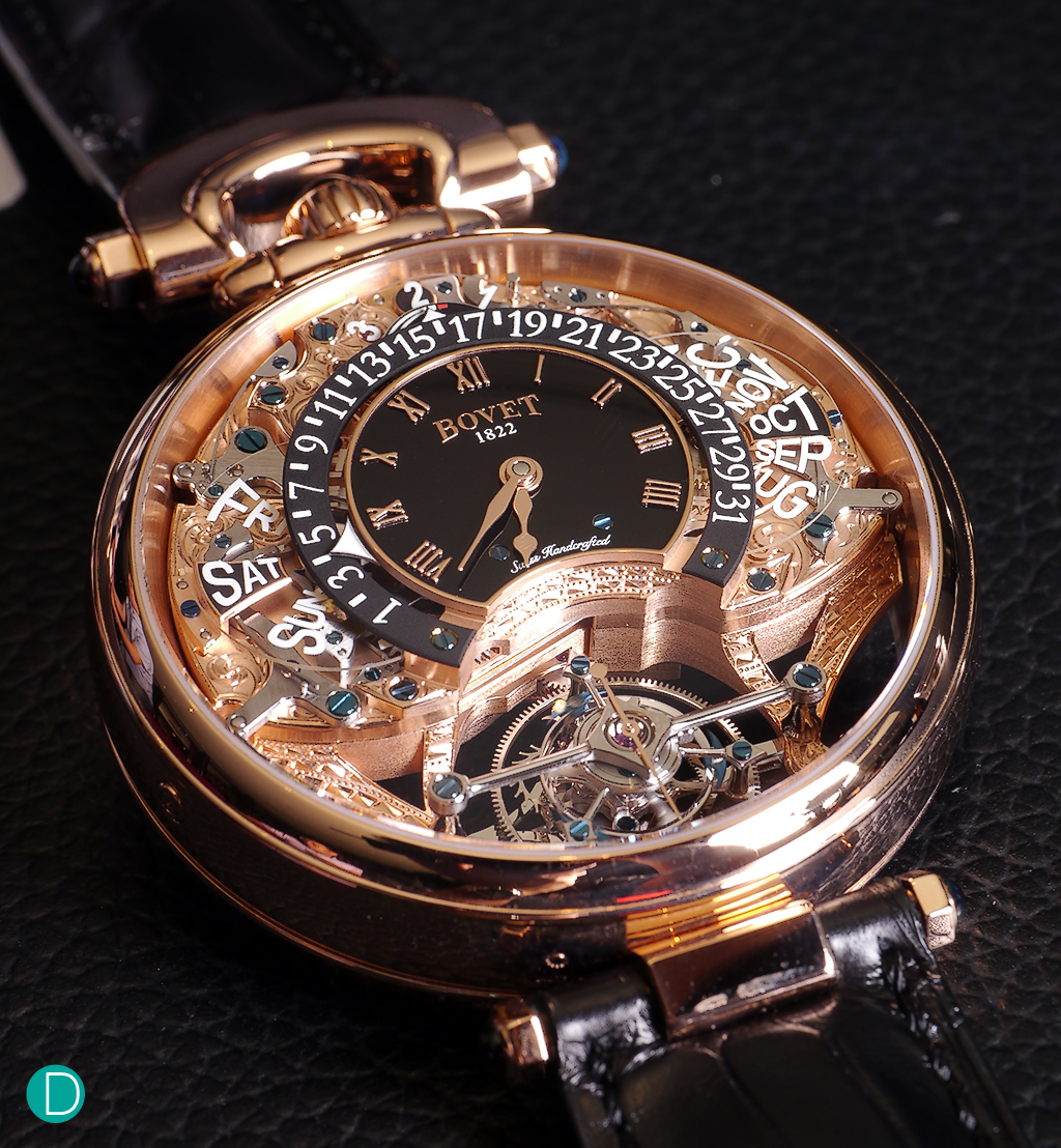 Швајцарскиот луксузен часовник Бовет го откри својот неверојатен Amadeo Fleurier Tourbillon Virtuoso III минатиот јануари, означувајќи го почетокот на добра година за љубителите на часовниците. Механизмот на овој часовник се состои од турбилон со ретрограден вечен календар. За да го направите овој календар лесен за читање, големиот турбилон е поставен во шестчасовна позиција, додека часовите и минути може да се видат на помал бројчаник над него. Остатокот од бројчаникот е скелетиран, така што можете да ѕирнете во срцето на ова ремек-дело. Исто така, брендот Bovet го создаде овој часовник на таков начин што лесно може да се претвори од рачен часовник во џебен  часовник или часовник за на маса, додавајќи му повеќекратни намени.