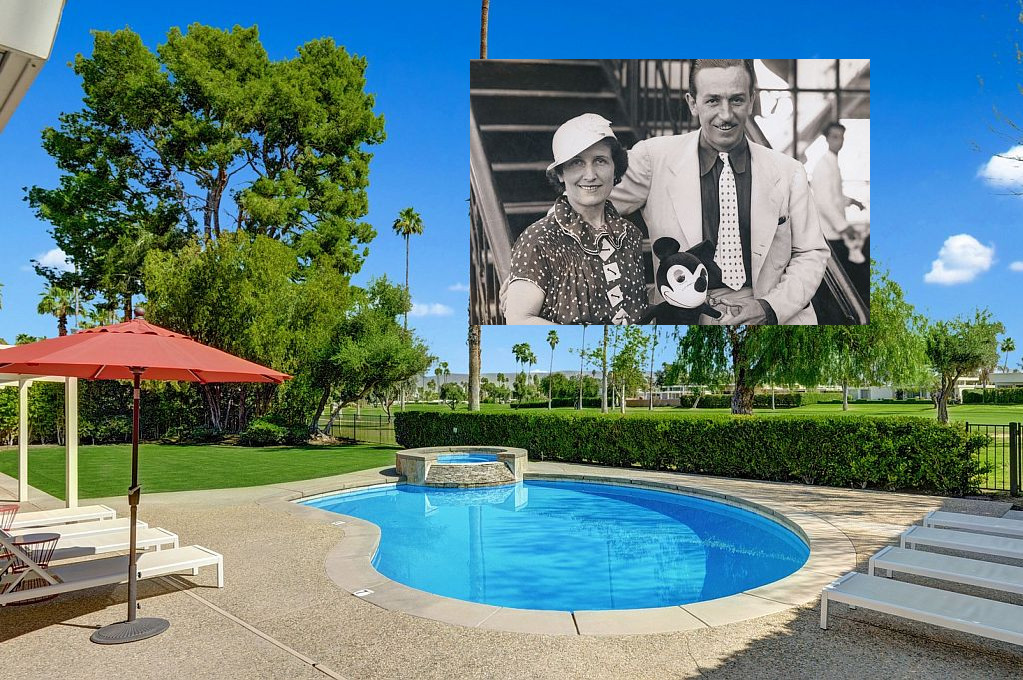 BNPS.co.uk (01202) 558833. Pic: BetterHomesAndGardens/BNPS Pool and gardens. Disney's land.... A colourful home built for Walt Disney and his wife next to a golf course is about to sell for a record price. The quirky property in Palm Springs, California, was built for the famous entrepreneur and animator in 1962 and became known as his 'Technicolor Dream House'. The single-storey house, which still has some original features from Disney's time there, recently went on the market for £885,000 ($1.095m). It is now under offer (in escrow) and the new unnamed owner is expected to complete the sale on May 14.