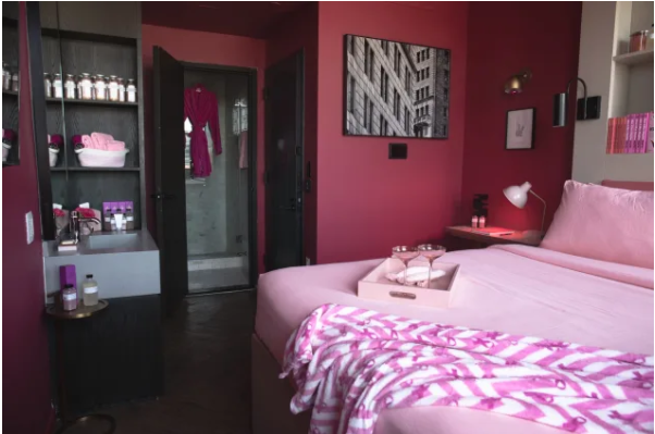Октомври е месец за подигање на свеста за ракот на дојка и Walker Hotel Tribeca, луксузен хотел за животен стил на Walker Hotels, подготви ексклузивен пакет за одмор во корист на Националната фондација за рак на дојка. Овој месец, гостите можат да резервираат целосно розова соба: од ѕидовите, со прилагодена нијанса на розова боја создадена во партнерство со Мартин Кеселман, дизајнер на ентериер со седиште во Њујорк и сопственик на изложбениот салон Tribeca INCOLOR, до удобностите и тоалетите.