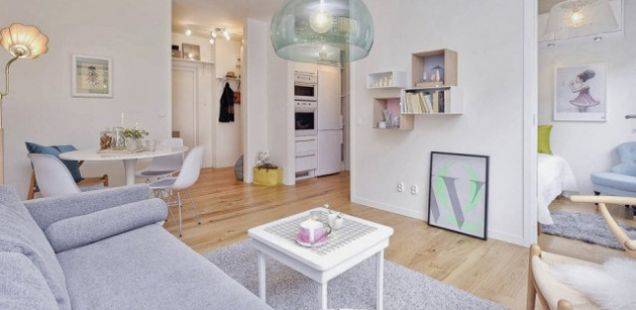 Млада дизајнерка сопственичка на овој стан од 40 метри квадратни успеала да вметне ненаметлива женственост во својот мал животен простор. Станот е светол и доминира белата боја која оптички го отвора просторот, и разигран е со пастелни детали и мебел во светли нијанси. Иако мал, ги содржи сите елементи на еден стан – влезен ходник со плакари и скриена перална, купатило, дневна соба, трпезарија, кујна, и минијатурна, но сепак одвоена спална соба.