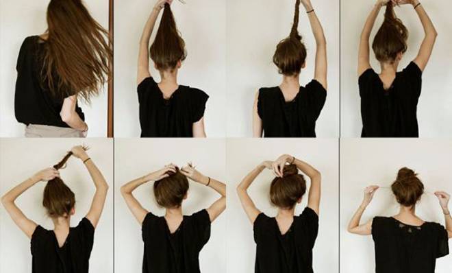 За оваа фризура може да се определите во секојдневни прилики, особено во ситуација кога немате доволно време да и се посветите на вашата коса. Потребно е само мало ластиче со кое ќе ја соберете косата и ќе направите неуреден круг околу истото.
