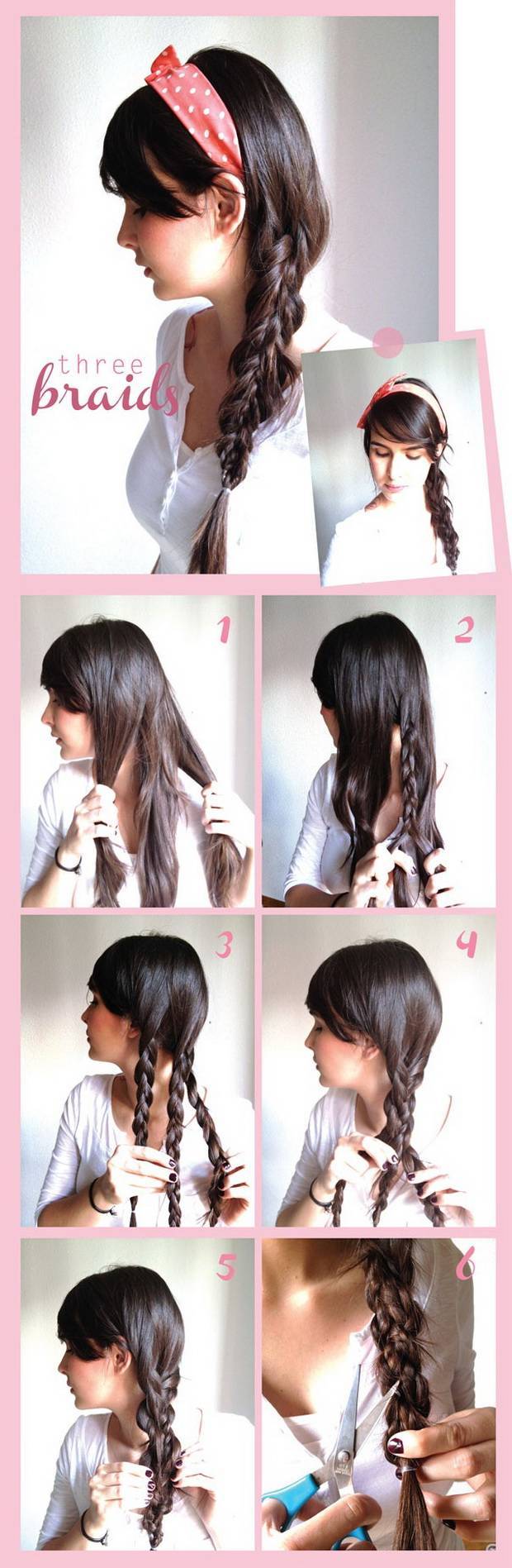 4. Плетенка 3 во 1 е многу лесна и интересна фризура. Соберете ја цела коса на една страна, поделете ја на 3 дела и од секој сплетете по една плетенка. Сите 3 плетенки сплетете ги во една.