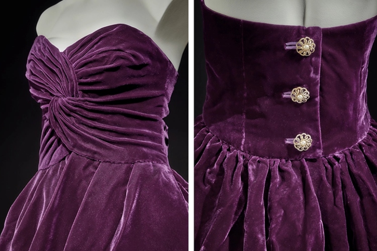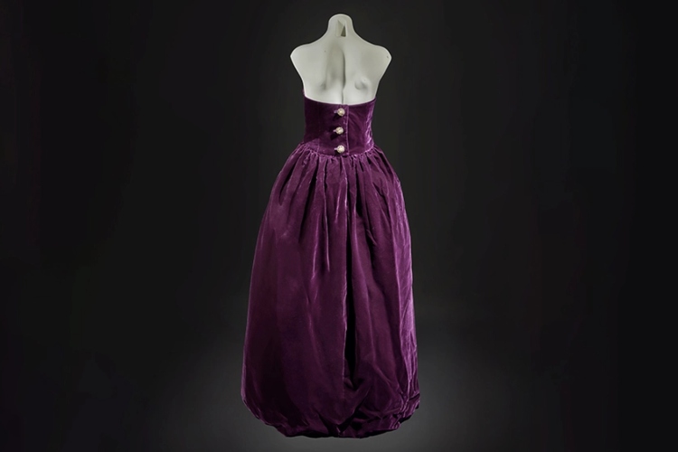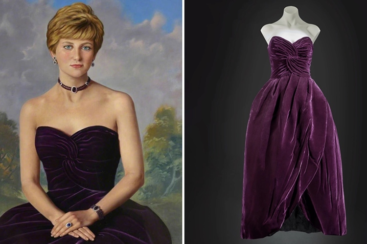 Раскошниот фустан на Виктор Еделштајн е изработен од свилен плиш, а покојната принцеза го носеше фустанот во познатиот кралски портрет од 1991 година, покрај тогашниот принц Чарлс. Дијана исто така го носеше фустанот, кој се проценува дека ќе се продава помеѓу 80.000 и 120.000 долари, за изданието на Vanity Fair во 1997 година, снимено од Марио Тестино.