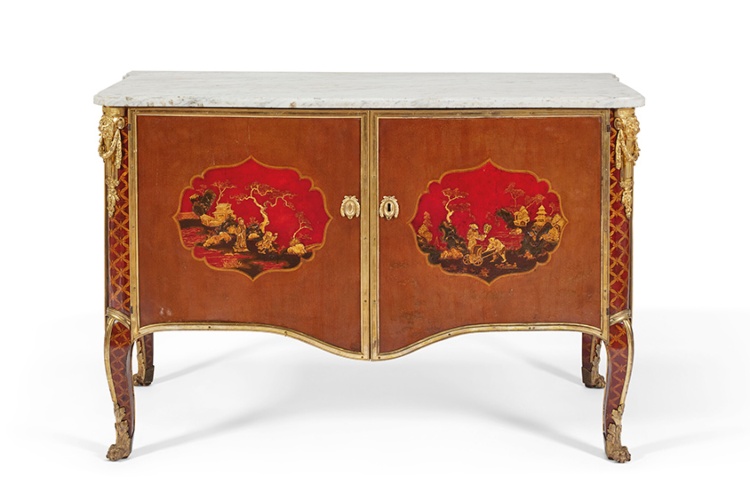 Првото парче е комода направена од Пјер Макре во 1770 година, за тогаш 15-годишната идна кралица Антоанета. Декоративната комода е олицетворение на „le goût chinois“, што беше врв на добриот вкус во тоа време во историјата, според Кристи. Комодата е опремена со „tôle-dorée“ врати кои се закривени како бранови и имаат детални „chinoiserie“ пејсажи.