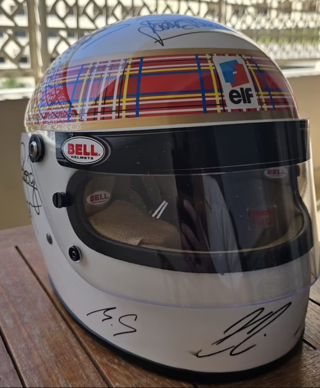 Белата кацига со препознатливиот дизајн на Royal Stewart Tartan, каква што го носеше Стјуарт за време на неговата славна кариера во 1960-тите и 1970-тите, ќе биде претставена на јавноста за првпат на Гран при на Бахреин оваа недела. Сер Џеки Стјуарт, кој сега има 85 години, ќе вози почесен круг пред трката со својот болид од 1973 година, кога ја освои својата последна шампионска титула.