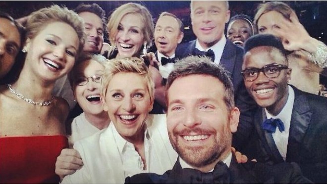 Елен го стори тоа пред Џенер и исто така на доделувањето Оскари. На фотографијата што таа ја направи се појавија Мерил Стрип, Џулија Робертс, Кевин Спејси, Бред Пит, Џенифер Лоренс, Бредли Купер и Лупита Нионго. Фотографијата стана вирална со повеќе од 1,9 милиони споделувања и собра повеќе од 1,3 милиони лајкови на Инстаграм.