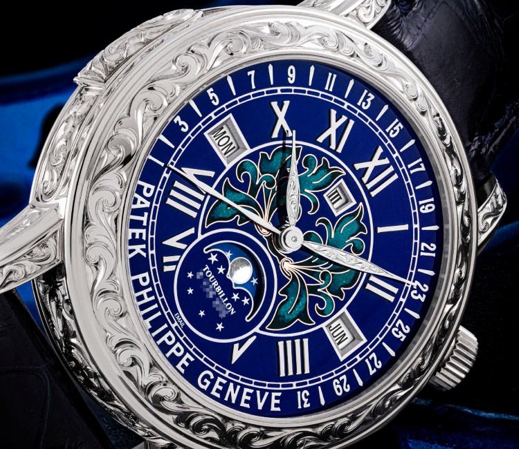 Часовникот беше дел од аукцијата „Top of the Time“ што ја одржа Christie’s во Хонг Конг.Модел од 42 мм Реф. 6002G се одликува со куќиште од 18К бело злато и впечатливо сино емајлирано копче.Извонреден часовник, со своите импресивни 12 одделни движења, речиси невозможно да се најде на пазарот, а ретко се наоѓа на аукција. Всушност, аукцијата на Christie’s донесе повеќе од половина од вкупната конечна продажба од 8,4 милиони долари.