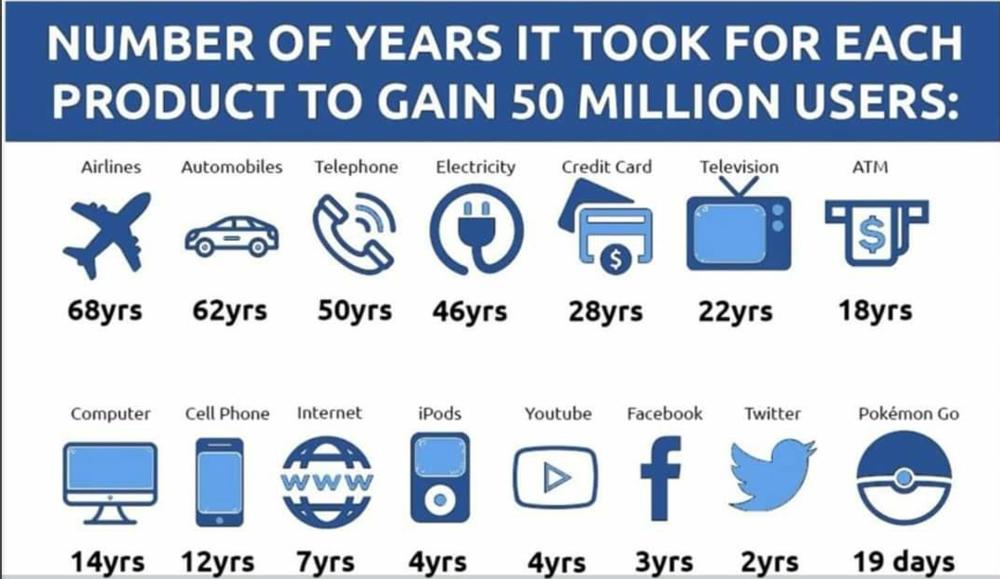Имено, некој се сетил да спореди колку време се потребни одредени технологии и компании да достигнат 50 милиони корисници.