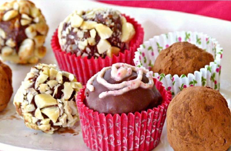5. Правиме мали топчиња, ги редиме и дел од нив валкаме во какао, дел ги прелеваме со глазурата од чоколадо, а дел ги валкаме во лешници. Излегуваат околу 40 пралини.