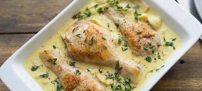Пилешко со шампињони и павлака