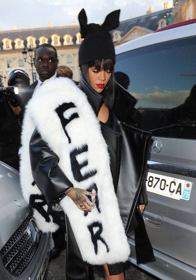 Ријана овојпат се одлучи за огромно крзно со натпис СТРАВ.