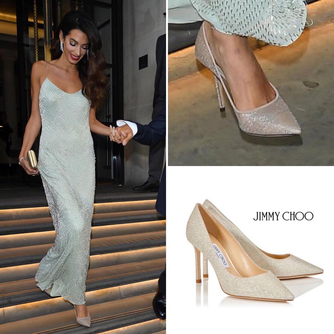 Целото издание во знакот на гламурот, Амал Клуни ги заокружи салонки со метален сјај, исто така зад познатиот малезиски дизајнер Jimmy Choo.
