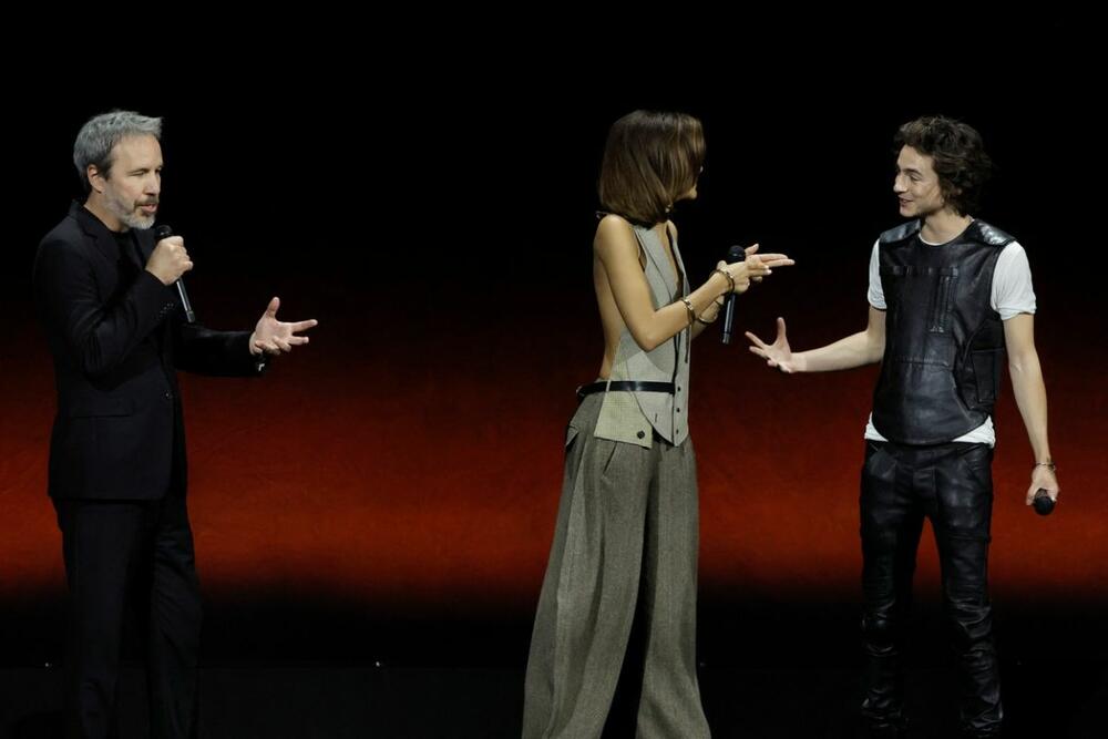 Зендеја во Cinemacon пристигна многу стилски, во панталони со широки ногавици, висок струк, кои се јасно инспирирани од бизнис стилот, но со малку бохо „твист“.Сето ова го искомбинирала со високи салонки со шпиц врв и шик елек,целиот стајлинг изгледа премногу невообичаено.