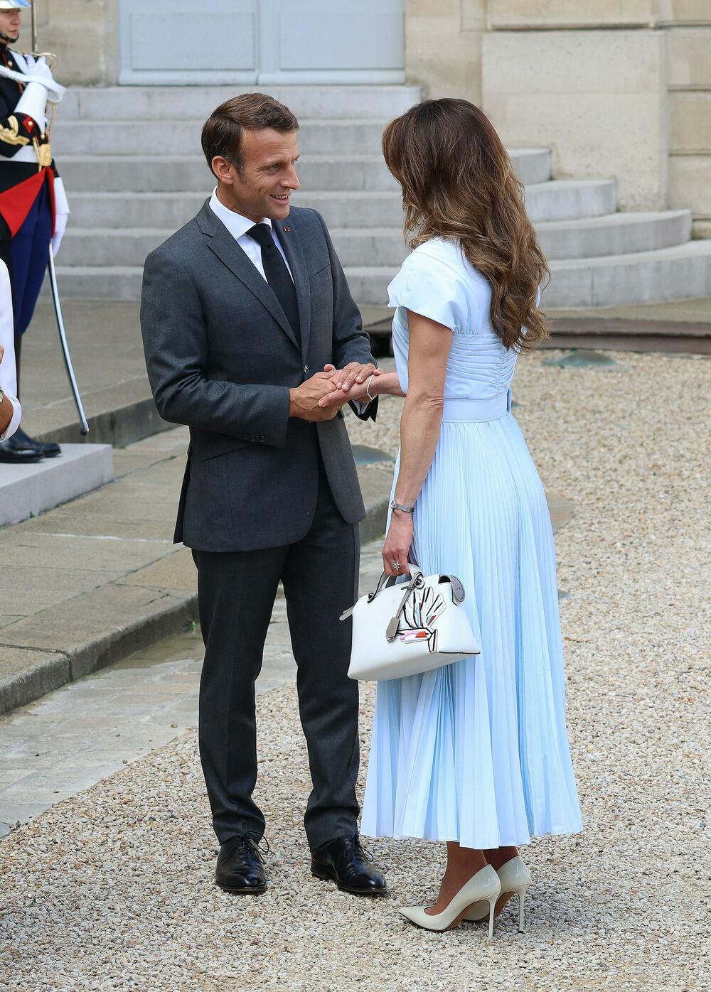 Како и првата дама на Франција, свеченото издание го заокружи со класични поинте чевли, чија бела верзија ја потпишува познатиот дизајнер на чевли Jimmy Choo.