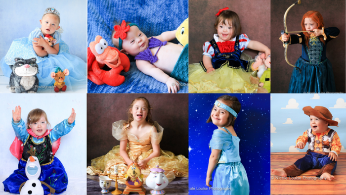 Фотографката Никол Луиз Перкинс од Велика Британија, која моментално работи во средно училиште за деца со посебни потреби, го осмисли проектот Даун Дизни, во кој ги претставува децата како нивни омилени ликови на Дизни. Никол вели дека нејзината цел била да ги претстави децата со Даунов синдром во целата своја убавина, па затоа ги ставила срцето и душата во секое снимање, за да го покаже нивниот позитивен дух.Рори Хејвуд (стар една година) како Баз Лајтјер од „Приказна за играчките“