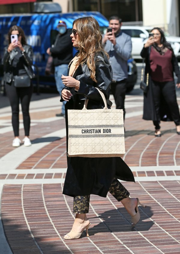 Освен ѕвездата на ‘Modern Family’, на шармот на оваа практична чанта со потпис на дизајнерот не можеше да одолее уште една позната латино дива. Станува збор за Џенифер Лопез, која исто како и Вергара често носи своја верзија на чантата на Dior во лежерен стајлинг низ улиците на Лос Анџелес.