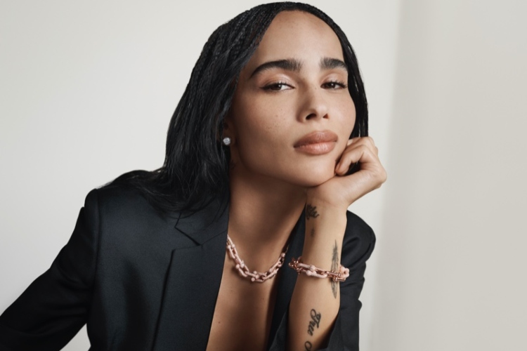 Во новата кампања „This is Tiffany“, Зои Кравиц носи предимензиониран блејзер, кроп топ и панталони, прикажувајќи ја колекцијата Tiffany HardWear.