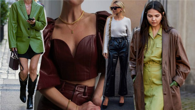 Изберете обоени панталони или розово палто, заводлив кожен фустан за забави или кожена кошула како алтернатива на јакна и мантил.Но, стилизирањето на модерни кожни предмети не е лесна задача за многумина, и тука ќе ви помогне инспирацијата од трендсетерките. Кожата може да ја комбинирате со џемпери, фармерки, памучни кошули и плетени тренерки. Треба да бидете претпазливи со ткаенини со сјајна структура: сатен и свила – кожата исто така има сјајна површина, а таквата мешавина од ткаенини може да го преоптовари стилот.