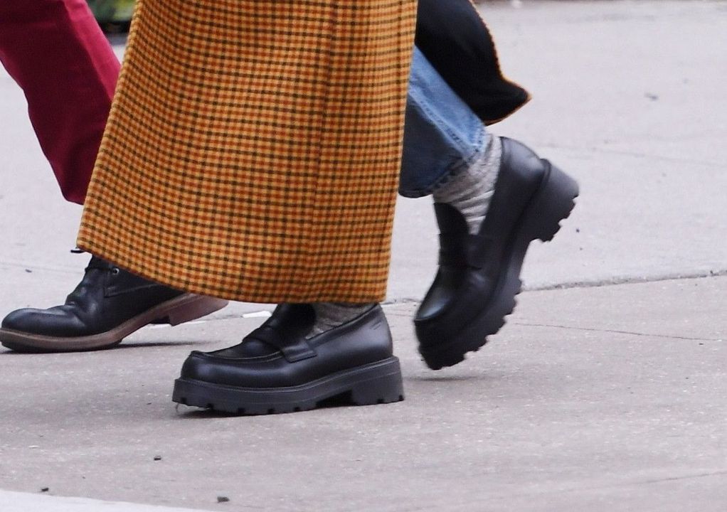 Фотографите неодамна ја фотографираа со момче како шета низ Њујорк во еден таков модел. Американската актерка носеше обемни мокасини од Кен на шведскиот моден бренд Vagabond. Станува збор за кожни чевли со нагласена платформа и пета од околу четири сантиметри.