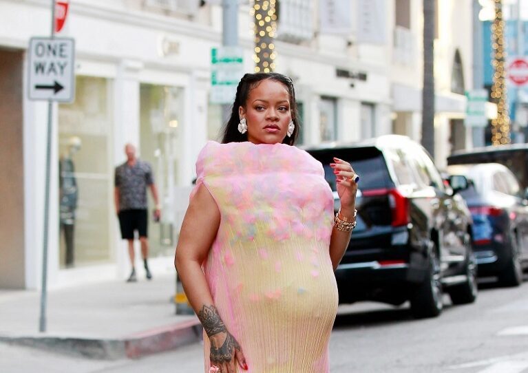 Најбизарната комбинација на Ријана за време на бременоста: Носеше розов фустан од „облак“ од речиси 3.000 долари и лимета зелени патики