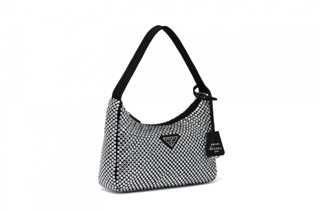 Постои и посебно издание на најлонска мини торба Re-Edition 2000, изработена од црн најлон и украсена со кристали како целина со потпис на марката. Препознатливото лого на плочки Прадa може да се види на секоја торба. Едноставноста и елеганцијата се најдобрите зборови за да се опише оваа колекција, создадени да зачудуваат и засенуваат.