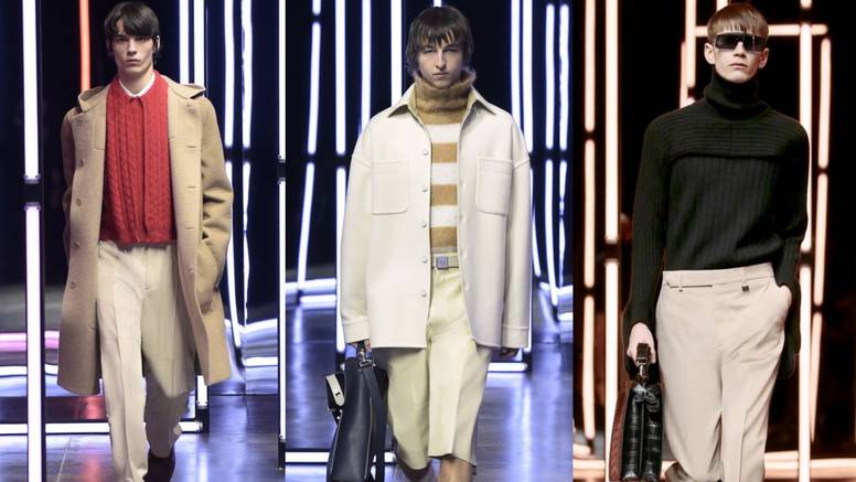 Силвија Фенди се занимава со класични елементи на машка облека, но тука додава и логоманија, па покрај основните тонови, колекцијата ги истакнува и ефективните, кои го испишуваат само името на брендот.