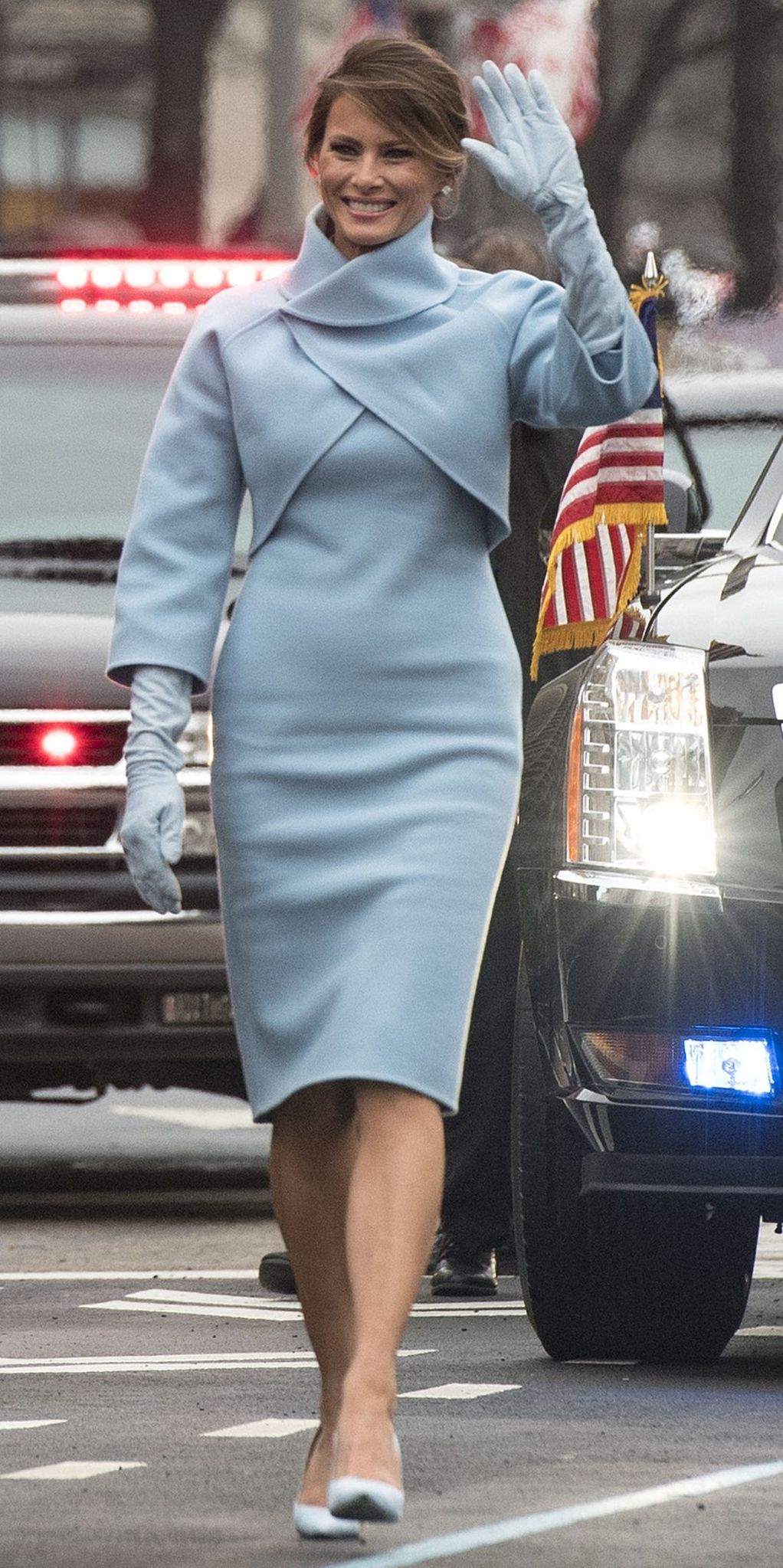 Тогаш многу дизајнери ја одбија едногласно новата прва дама, но Ралф Лорен со задоволство ја прифати работата, облекувајќи ја Меланија Трамп во бебешки син фустан и јакна изработена од најфиниот кашмир.