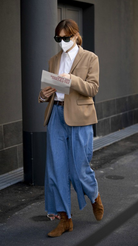 Затоа, исклучително е важно како и со што ги носите вашите омилени фармерки. Но, не паничете: подготвени сме да ви дадеме универзални едноставни совети како да изгледате стилски во секоја ситуација. Прво, не плашете се да навлечете блуза или џемпер во фармерки, особено широки. Ова ќе создаде добри пропорции и ќе ја нагласи линијата на струкот. Во овој случај, строгата ролна ќе изгледа особено убаво. Второ, едноставните комбинации секогаш победуваат. Бела кошула, основна маичка, едноставна дуксерка, густ плетен џемпер или џемпер од кашмир се уште е најдобриот пар за вашите омилени фармерки. Понекогаш нема смисла да бркате екстраваганција – едноставноста има свој шарм. Трето, не плашете се да вметнете фармерки во чизмите: оваа мешавина од 90-тите и раните 2000-ти повторно е на врвот на популарноста.