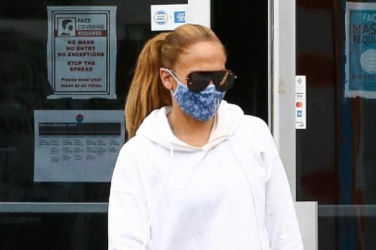 Со цел да се скрие од љубопитните минувачи, таа го маскирала лицето со очила за сонце и, се разбира, поради пандемијата на вирусот корона, со заштитна маска што фино ја измеша со бојата на нејзината тренерка.