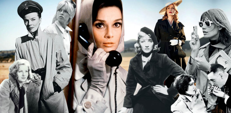 Сепак, тренч капутот или дождовникот „играше“ на големото платно многу порано, во декадентните дваесетти години на грбот на Грета Гарбо во филмот „A Woman of Affairs“, Глорија Свансон во „Queen Kelly“ или во средината на педесеттите години, кога ја носеше Катарин Хепберн во “The Iron Petticoat”. Но, и покрај тоа што мантилот за дожд беше симбол за еманципација на жените, а го носеа архетипски силни жени кои не се грижеа за социјалните правила и наметнатите граници, беж мантилот отпорен на дожд сепак беше доминантна машка облека. Само иконата Одри Хепберн во филмот „Појадок кај Тифани“ го направи бесмртен и, конечно, женствен. После маестралниот успех на големото платно, продажбата на женската верзија на мантилот едноставно експлодираше! Популарноста на мантилите се искачи тогаш, во раните шеесетти години, до невидени височини и беж капутот со појас на половината, беше зацементиран како симбол на добар стил, суверено фаќајќи го статусот на неповредлив стилски класик, без кој е скоро невозможно да се замисли дождливи есенски и пролетни денови.