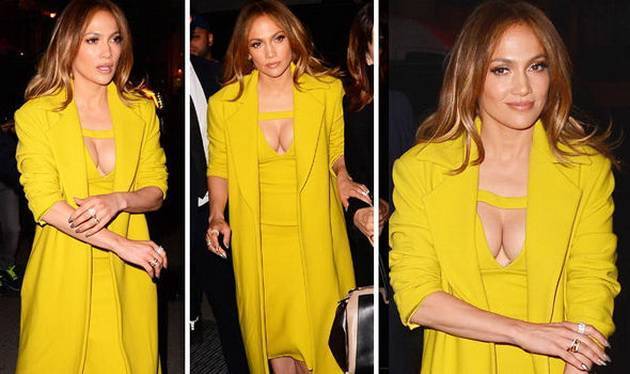 46-годишната убавица приреди уште едно појавување за паметење низ улиците на Њујорк, кога облече тесен жолт фустан под коленици, капут во иста нијанса и црни салонки.