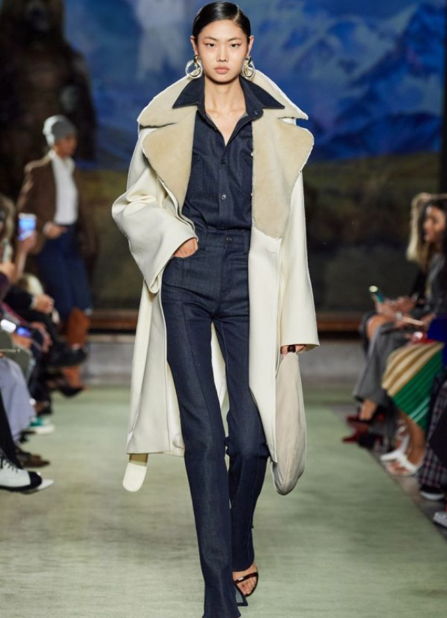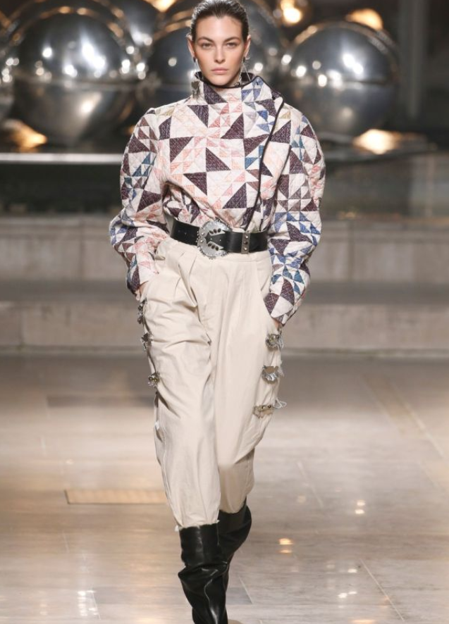 Изабел Марант не се грижи што бежовите нијанси се неофицијално резервирани за летниот период, а таа препорачува да ја освежите есенската и зимската гардероба со пар светло-беж фармерки, исто така со пошироки нозе. Во прашање е изглед кој е тотално „а ла 80-ти“ – џемпер со впечатлива шема вметната во панталоните, додека ногавиците се пикнати во чизмите.