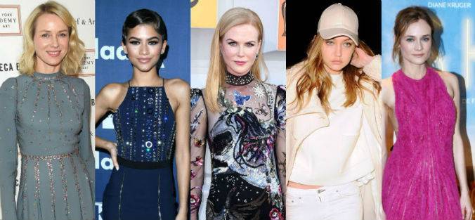 Кога се двоумите одберете го Valentino. Продолжуваме да пловиме по актерските води. Naomi Watts на себе имаше преубав фустан од колекцијата нa Valentino, во необична сино-сива нијанса со прекрасни украси.Во комбинација со добри Rockstud салонки и прашесто розева мала чанта, овој пролетен изглед е вистински хит, а неутралната шминка исто така е вистински хит.