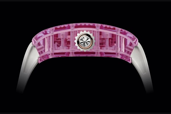 По неверојатниот успех на нивните керамички и Carbon TPT® часовници украсени со скапоцени камења, Ричард Мил сега претставува случај создаден од обоен сафир, кој е украсен со дијаманти. Формиран од еден блок со сафир, со тоа овој модел добил елегантна форма и колоритен израз. Благодарение на својата неверојатна цврстина, сафирот е материјал кој е неверојатно тежок за обработка, додека неговото завршување и украсување со дијаманти е исто така навистина бара. Сепак, познатата марка успеа во двете овие мисии, благодарение на својата неверојатна експертиза во областа на работата со иновативни материјали, техничко знаење и бескомпромисни контроли за квалитет.