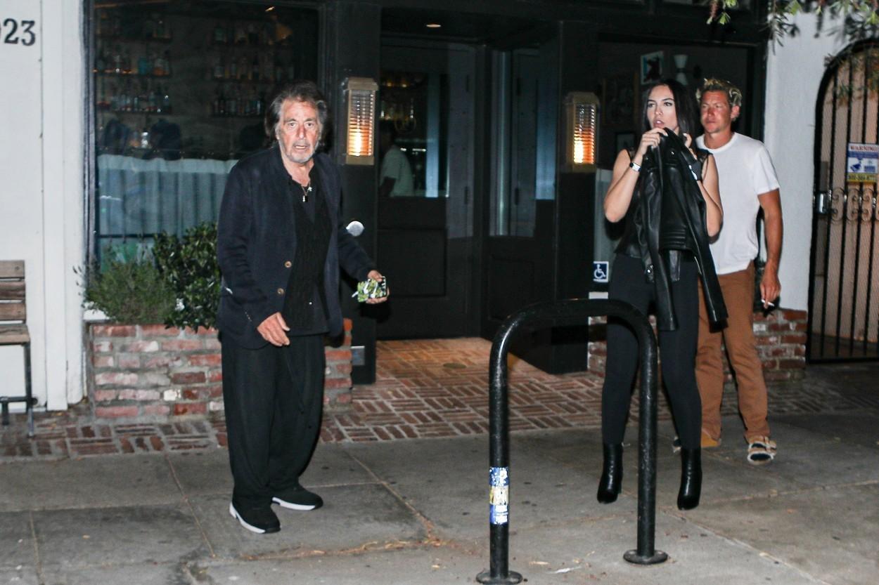 Ал Пачино е виден во црна облека, додека неговата младешка придружба за оваа пригода избра црни хеланки, маичка од тантела, кожна јакна и чизми на високи потпетици.
