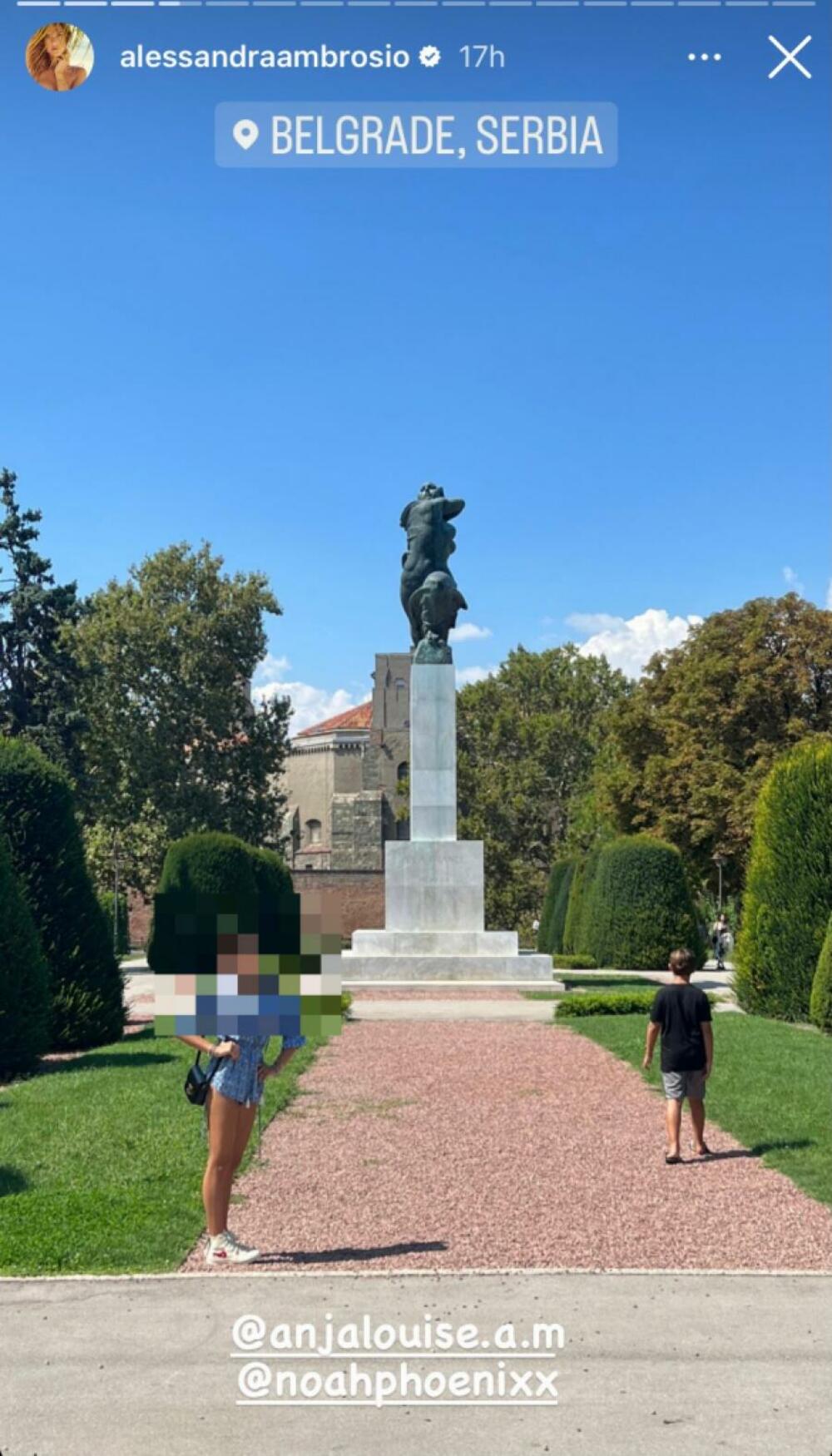 Манекенката вчера беше снимена како излегува од хотелот во строгиот центар на градот, а потоа отиде на обиколка на знаменитостите, па ја сподели снимката од Калемегдан.