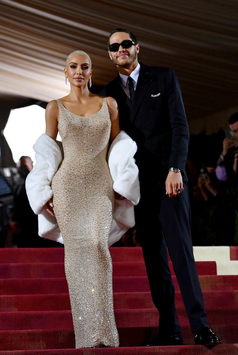 Ким пристигна во придружба на новото момче Пит Дејвидсон, а сите присутни останаа без зборови! Ријалити ѕвездата тврди дека морала да ослабе 8 килограми за да се „лизне“ во фустанот на Мерлин Монро.