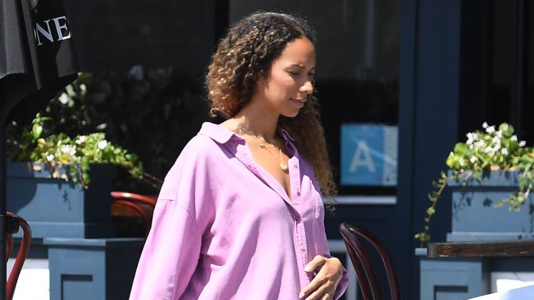 Овој пат папараците ја уловија по состанок во нејзината агенција за таленти за пеење. Леона носеше широкa кошула која го истакна нејзиниот труднички стомак, а ја комбинираше со широки фармерки и удобни Off-White патики.