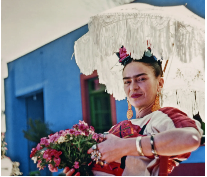 A Portrait of Frida Kahlo in the courtyard of La Casa Azul by Florence Arquin.