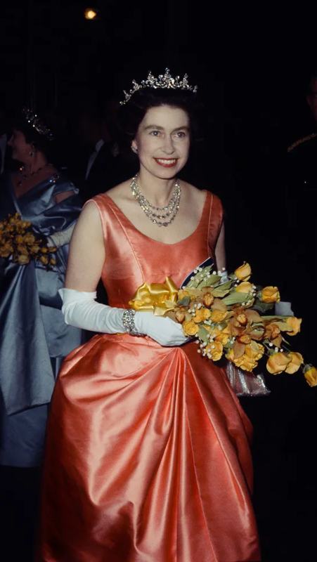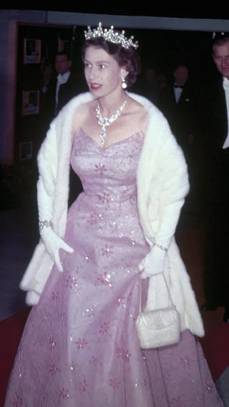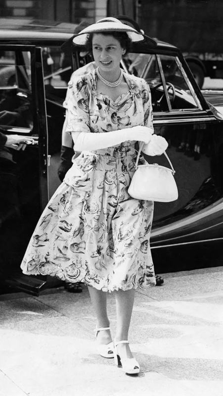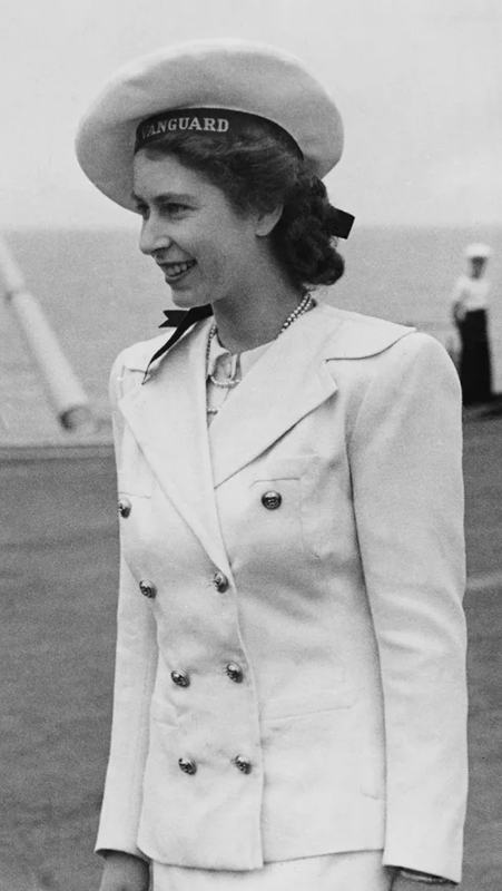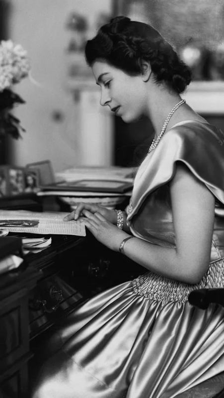 Таа го доби престолот на Велика Британија и Кралството на Комонвелтот на дваесет и пет години, по смртта на нејзиниот татко, кралот Џорџ Шести. Во младоста, како принцеза, претпочиташе скромни фустани, јакни со дворедно закопчување и бисери. Заедно со официјалните приеми, таа се вљуби и во свечените балски тоалети – бујните вечерни фустани ќе ги надополни со снежно-бели ракавици и луксузни дијадеми. Тогаш во неа се разбудила љубовта кон бојата – сина, розова, корална – играта на нијанси стана начин на самоизразување во строгите рамки на кралската облека.